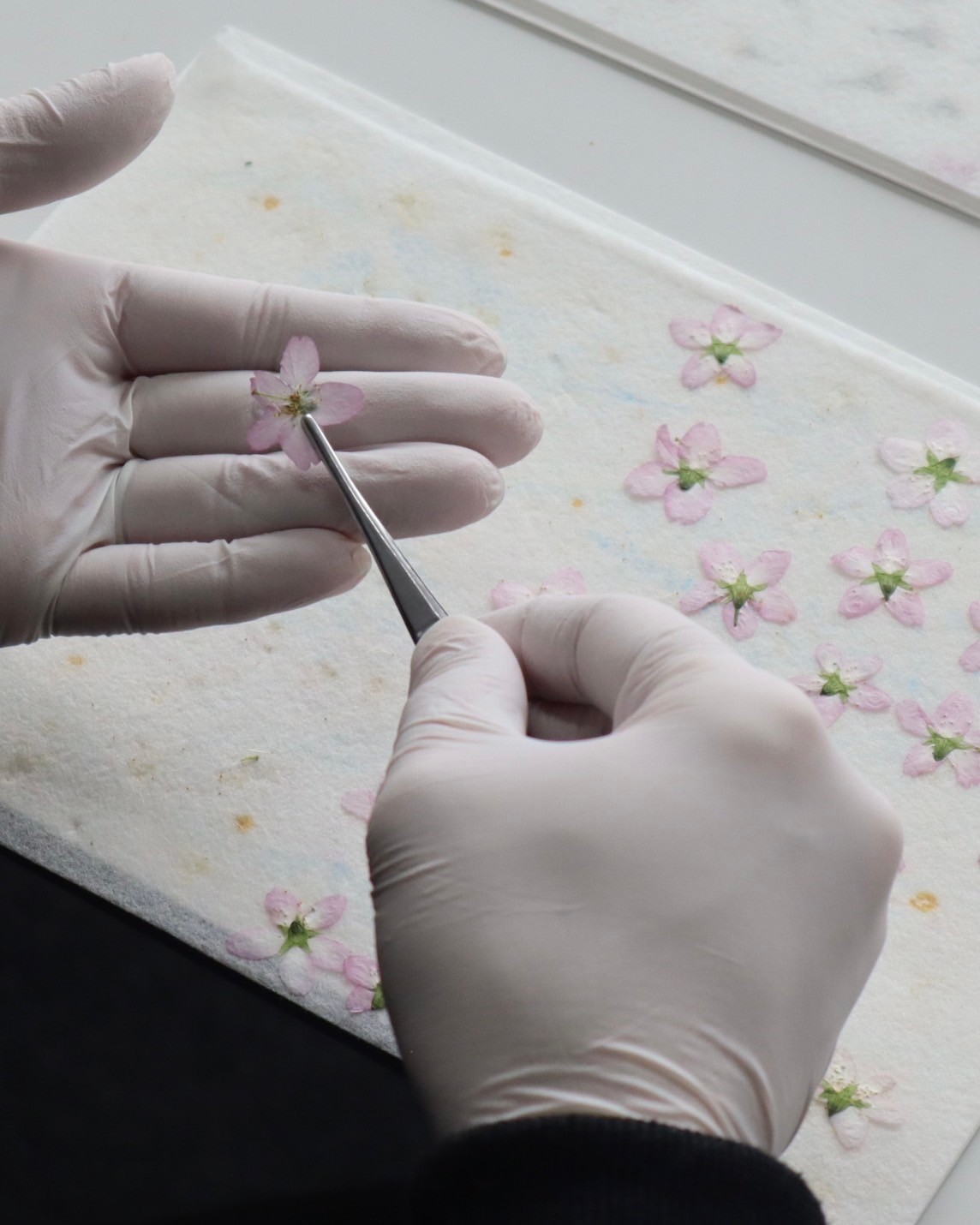 押し花業界初となる花芯と花びらを分けた特殊加工により
